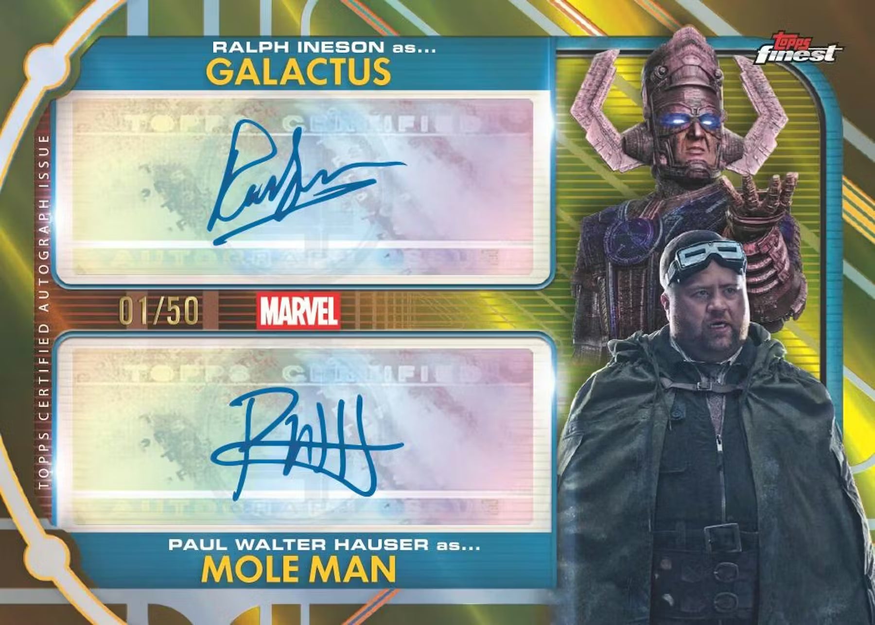 Finest Autographs spotlights characters from The Fantastic Four: First Steps paired with signatures from the actors who brought them to life. Look for autographs from Pedro Pascal, Vanessa Kirby, Joseph Quinn, Ebon Moss-Bachrach, and more!